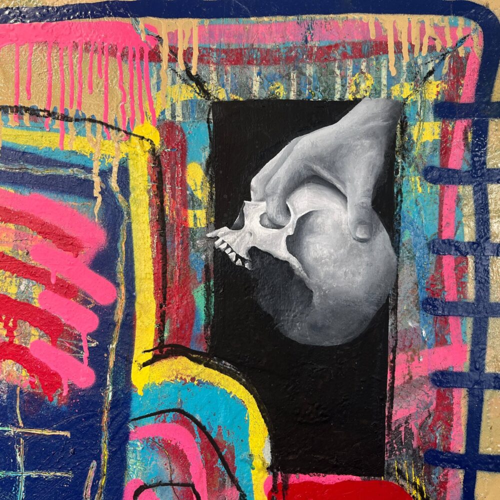 Dit schilderij is een gezamenlijke creatie met Grace Bush en onderzoekt de chaos van het leven als een dynamisch en gelaagd geheel. In het werk komen tegenstellingen samen: het fijne en het ruwe, het gecontroleerde en het instinctieve.